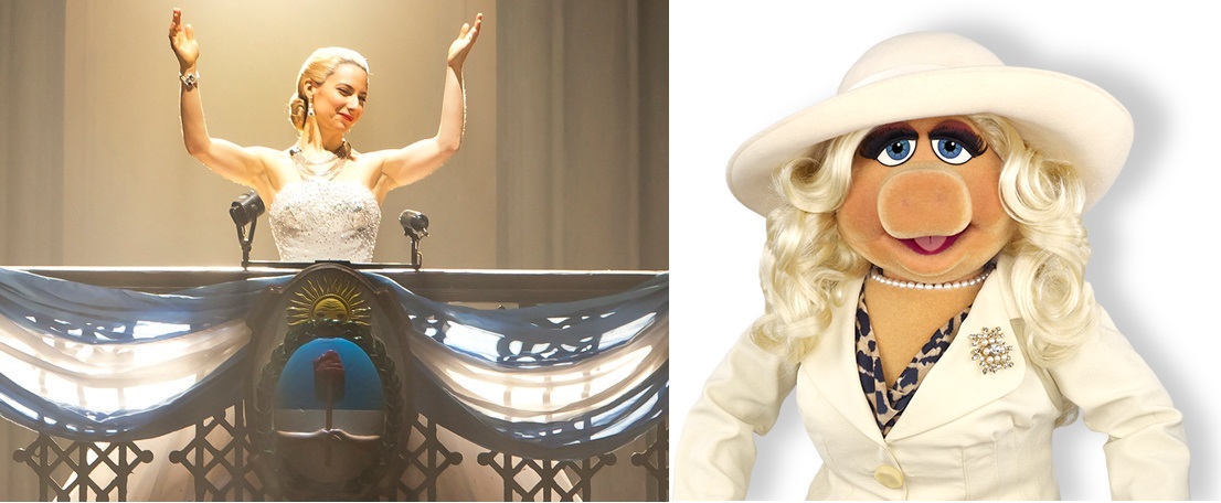 Eva Peron from Evita – Eva is a role seemingly written for Miss Piggy. She is an aspiring actress as well as an ambitious social climber. She will hitch herself to whoever will get her to the big city, a description familiar to anyone who saw her performance in The Muppet Movie. Besides the obvious personality similarities, Miss Piggy couldn’t resist the opportunity to sing “Don’t Cry for Me, Argentina” to an adoring Broadway crowd.