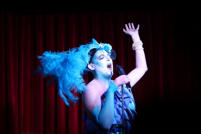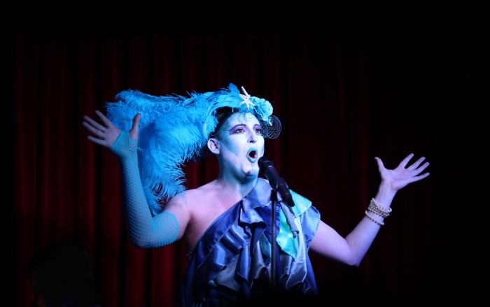 I’ve Been to Sea Before, a cabaret-drag show inspired by Joni Mitchell’s Blue, is a show with something for everyone. Joni Mitchell fan or not, it is a wonderful evening with everything expected from a good cabaret-drag show (great music, fabulous costumes, audience participation) and a few unexpected surprises (adopted manatees, obscure Disney movies, Red Lobster bibs).
